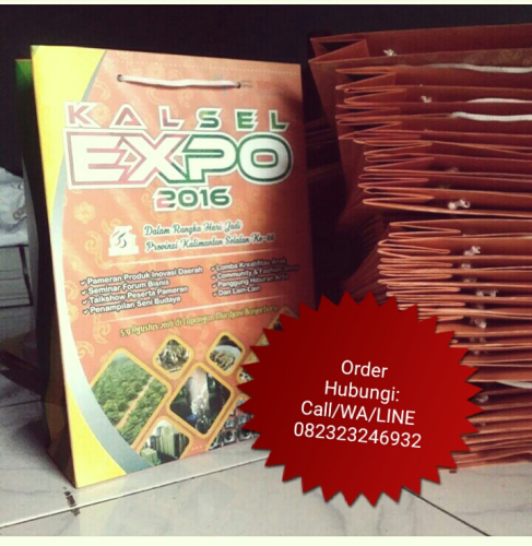Sampel pada gambar adalah salah satu produk tas kertas custom harga murah pesanan konsumen kami dari Kalimantan, untuk acara Kalsel Expo pada tahun 2016.
