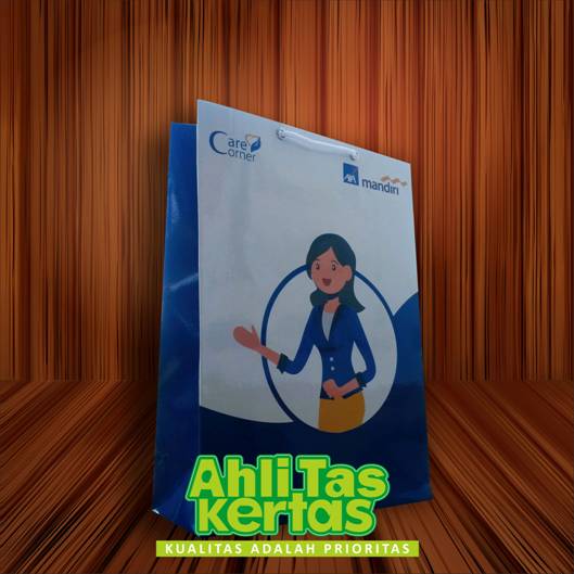 Produk paper bag kertas bisa dipesan sesuai kebutuhan, dengan desain dari Anda sendiri. Ukuran dan jumlah juga bisa custom sesuai keinginan. Namun untuk harga hemat pemesanan 500 biji. Produk tas kertas bisa dibuat mengkilap dengan teknik finishing glossy, seperti pada contoh gambar.