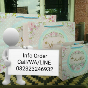 Rp 6.500jual paper bag harga murah custom design Rp.7.000/pcs bahan artcartoon 210 gram.