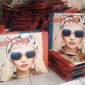 Paper bag Accessories bahan artcarton 230 gram, ukuran 35x10x25 cm, cetak fullcolour, tali kor, finishing laminasi glossy harga 6.000/pcs dengan minimal pemesanan 500 pcs.