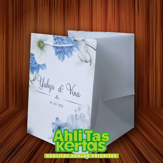 Jual paper bag kotak souvenir desain bebas – bisa untuk souvenir wedding, kemasan souvenir instansi, kantong souvenir sertijab, kantong seminar, dan sebagainya. Ukuran custom sesuai kebutuhan acara. Model paper bag juga bisa request, baik itu model potrait, model landscape, dan model kotak.